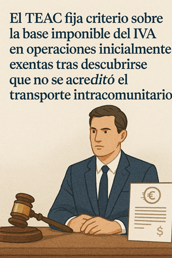 IVA. BASE IMPONIBLE. El TEAC fija criterio sobre la base imponible del IVA en operaciones inicialmente exentas tras descubrirse que no se acreditó el transporte intracomunitario
