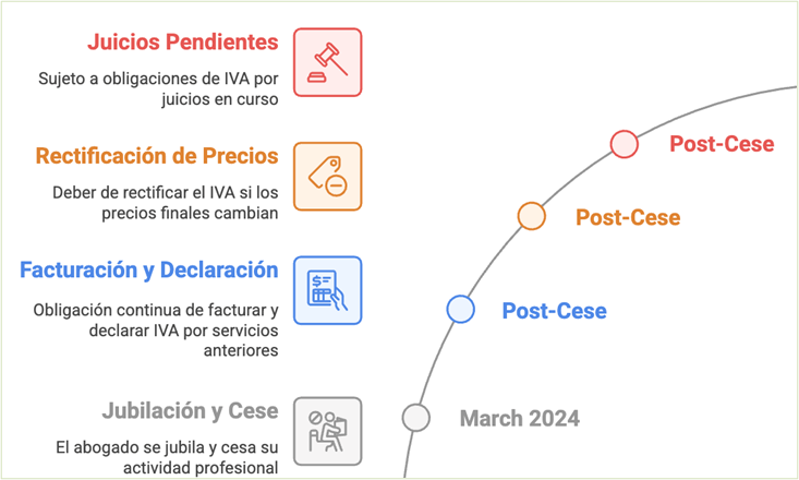 IVA. El cese como abogado no extingue las obligaciones en IVA sobre asuntos concluidos o pendientes tras la jubilación