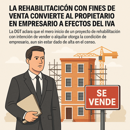 IVA. La DGT nos recuerda que el mero inicio de un proyecto de rehabilitación con intención de vender o alquilar otorga la condición de empresario, aun sin estar dado de alta en el censo