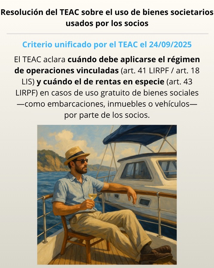 IRPF. DISFRUTE GRATUITO DE UN BIEN DE LA SOCIEDAD. El TEAC aclara el tratamiento fiscal del uso gratuito de bienes societarios por socios: siempre renta del capital mobiliario, pero con valoración distinta según la naturaleza del bien.