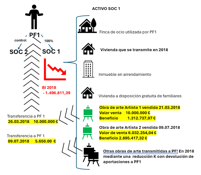- El 21 de marzo de 2018: SOC 1, transfiere una obra de ARTISTA 1 por valor de 10.000.000,00 euros y obtiene un beneficio de 1.312.737,97 €