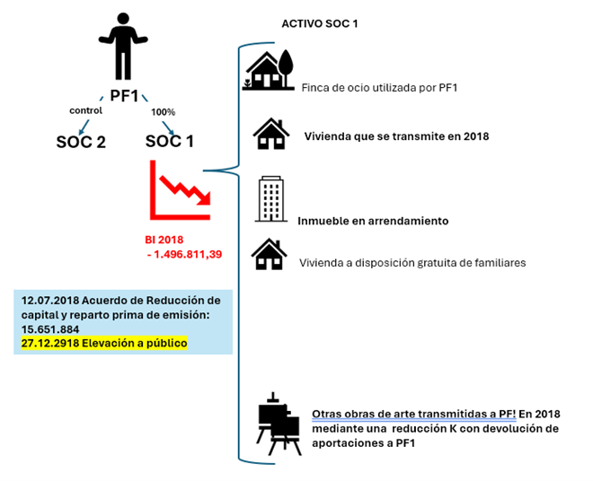 El 19 de noviembre de 2018: posteriormente, PF 1 acuerda efectuar una nueva reducción de capital social, con devolución de aportaciones en especie, y emplea para ello ciertas obras de arte cuyo valor de adquisición resulta ser muy superior a su valor de mercado.