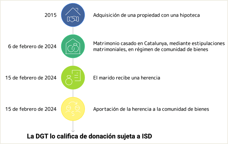 - El 15 de febrero de 2024, el marido de la consultante recibió una herencia de 175.000 euros de su madre.
