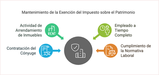 1. La contratación del cónyuge del administrador como autónomo puede permitir aplicar la exención en el Impuesto sobre el Patrimonio si se cumplen los requisitos laborales
