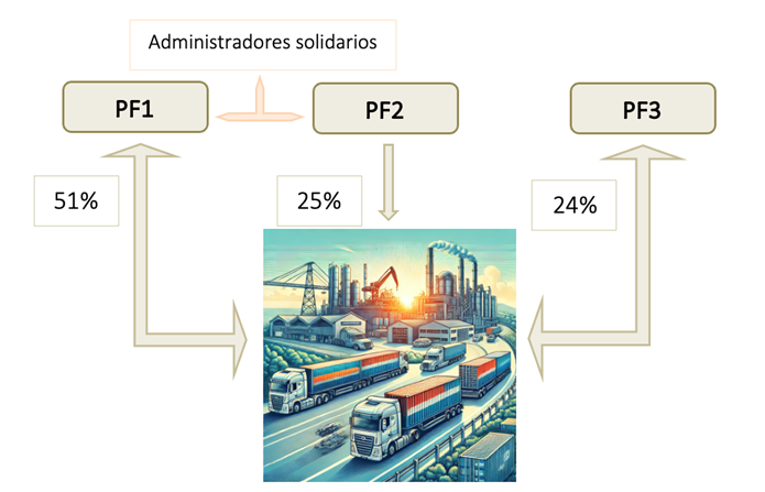 - La sociedad consultante se dedica al transporte de mercancías por carretera y tiene dos administradores solidarios, PF1 y PF2, que son también trabajadores de la empresa.