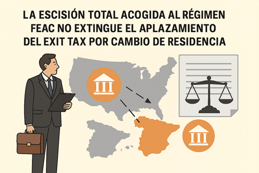 IRPF. EXIT TAX. La escisión total de una sociedad en el marco del régimen FEAC no determina el vencimiento anticipado del aplazamiento del exit tax previsto en el artículo 95 bis.4 LIRPF