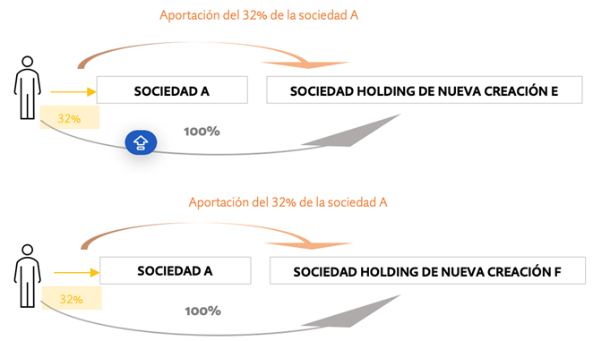 Se desea realizar esta operación de reestructuración: el consultante y el hermano de éste, titulares cada uno de un 32% de la entidad A, aportan a dos sociedades de nueva creación las participaciones que cada uno posee de la entidad A. Cada uno poseerá el 100% del capital de cada holding. Estas dirigirán y gestionarán la participación que poseerán de la entidad A, disponiendo de medios materiales y personales.