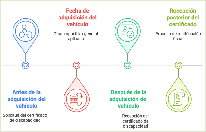 Cuando en la fecha de adquisición del vehículo no existiera el reconocimiento previo de la AEAT para la aplicación del tipo reducido y se hubiera aplicado el tipo general del Impuesto, pero con posterioridad a tal fecha se obtuviera el certificado que acredite el grado de discapacidad o movilidad reducida correspondiente, con efectos anteriores a la solicitud del reconocimiento previo y a la adquisición del vehículo, sí resultaría procedente la rectificación del tipo general aplicado originariamente.