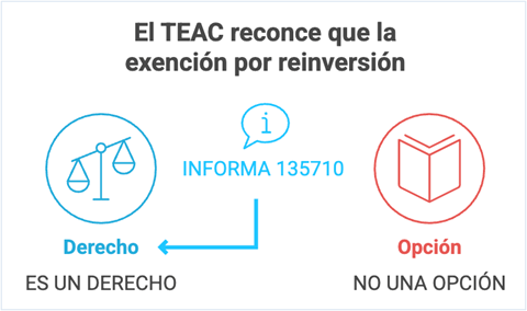 El INFORMA acogiendo criterio del TS acepta que la exención por reinversión es un DERECHO y no una opción