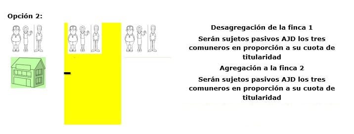 Tampoco supone transmisión patrimonial alguna, tributará por AJD: concepto sobre una base imponible coincidente con el valor de la finca que se adjudica. Será sujeto pasivo el comunero al que se adjudica el inmueble.