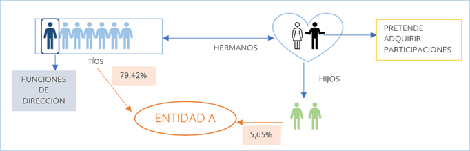 Junto con los consultantes, el resto de los titulares de las participaciones de la entidad A hasta contemplar el 79,742 por ciento son diferentes miembros de la familia de los consultantes, en particular seis tíos de los consultantes. Asimismo, próximamente está previsto que el padre de los consultantes adquiera también una participación en el capital social de la entidad A.