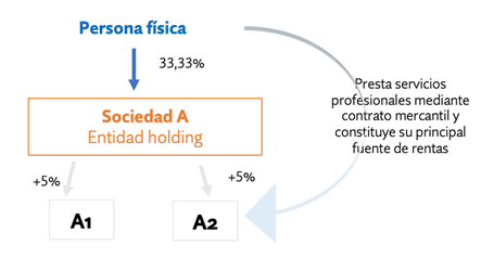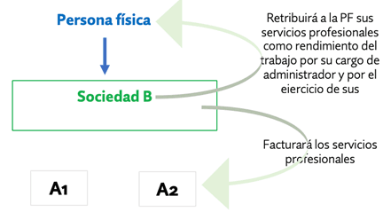 El consultante ha constituido recientemente la sociedad limitada B, desde la que pretende prestar sus servicios profesionales y también gestionar sus operaciones de inversión y titularidad de participaciones sociales. El consultante dejará de prestar sus servicios profesionales de modo personal y los realizará por medio de dicha sociedad, así la sociedad B pasará a facturar los servicios profesionales a la entidad A2. De esta forma limitará su responsabilidad y el deslinde de los patrimonios personales y empresariales.