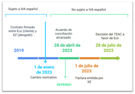 IVA. PRESTACIÓN SERVICIOS JURÍDICOS. El TEAC anula la repercusión de IVA por servicios jurídicos prestados a no residente al devengarse tras la reforma de 2023 y no localizarse efectivamente en España