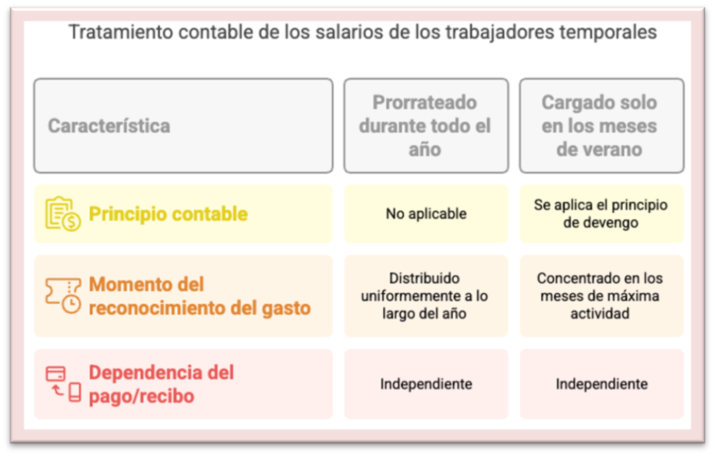 - Por tanto, los gastos salariales deben imputarse contablemente en el periodo en el que se produce la prestación efectiva del servicio, es decir, durante los meses en los que el personal eventual está en activo.
