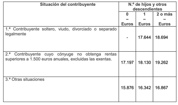 A tal efecto, para la consecución del objetivo señalado, el apartado uno del artículo único modifica el apartado 1 del artículo 81 del Reglamento del Impuesto indicando las nuevas cuantías de los rendimientos de trabajo a partir de los cuales se practica retención e ingreso a cuenta, en función del número de hijos y otros descendientes y de la situación del contribuyente. Estas cuantías son el reflejo de la cuantía máxima de rendimiento íntegro de trabajo cuya cuota de retención es nula, teniendo en cuenta su situación personal y familiar y las normas de liquidación de un rendimiento, entre los que se encontraría la nueva reducción propuesta en la letra d) del apartado 3 del artículo 83 de este Reglamento a que se alude a continuación.