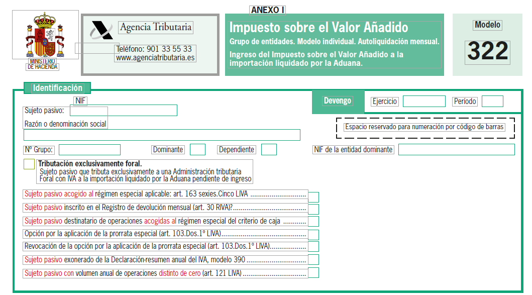 Anexo I. Modelo 322 (PDF, 664 KB aprox.).