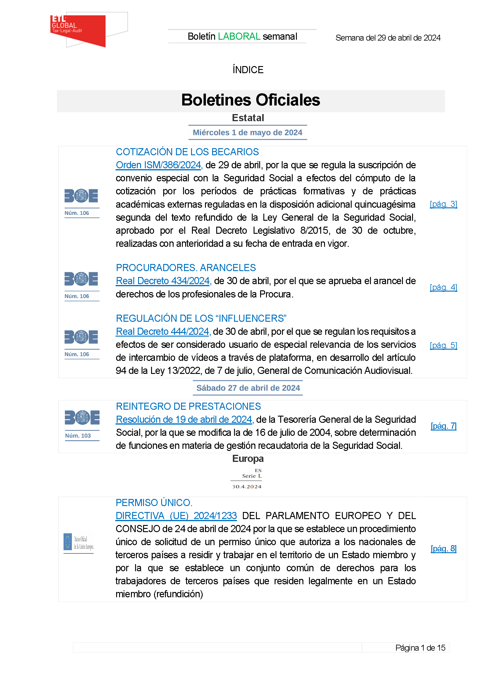 Boletines laboral ETL