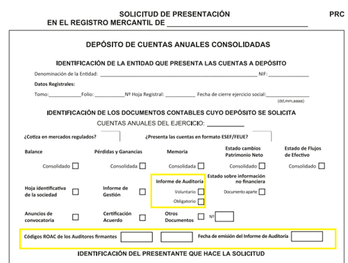 La primera de ellas se refiere a una cuestión de detalle en la instancia de presentación de los modelos de depósito de cuentas de las sociedades que han sometido sus cuentas anuales a auditoría.