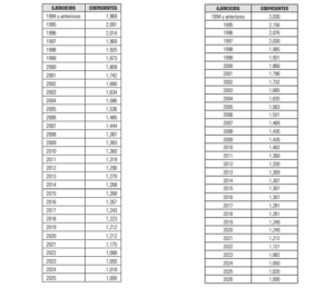 Artículo 2. Coeficientes de corrección monetaria aplicables para los períodos impositivos que se inicien durante 2026, a efectos de lo dispuesto en el apartado 9 del artículo 40 de la Norma Foral 37/2013, de 13 de diciembre, del Impuesto sobre Sociedades.