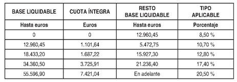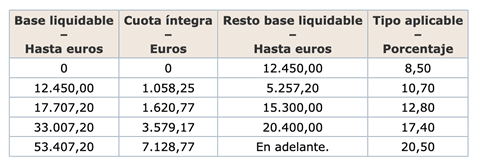 La escala autonómica en el impuesto sobre la renta de las personas físicas es la siguiente: