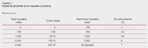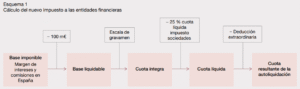 El Impuesto sobre el margen de intereses y comisiones se configura como un tributo de naturaleza directa que grava el margen de intereses y comisiones obtenido por entidades de crédito, sucursales de crédito extranjeras y establecimientos financieros de crédito derivado de la actividad que desarrollen en territorio español. Este impuesto nace con vigencia limitada.