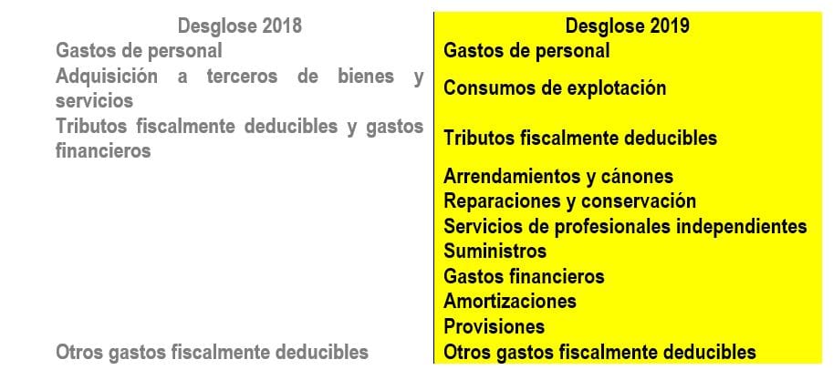 Para el ejercicio 2019, en el modelo 184 se ha incluido un mayor desglose de gastos para las actividades económicas en régimen de estimación directa (normal y simplificada), incluyendo en el DETALLE DE GASTOS / RENDIMIENTOS DE ACTIVIDADES ECONÓMICAS