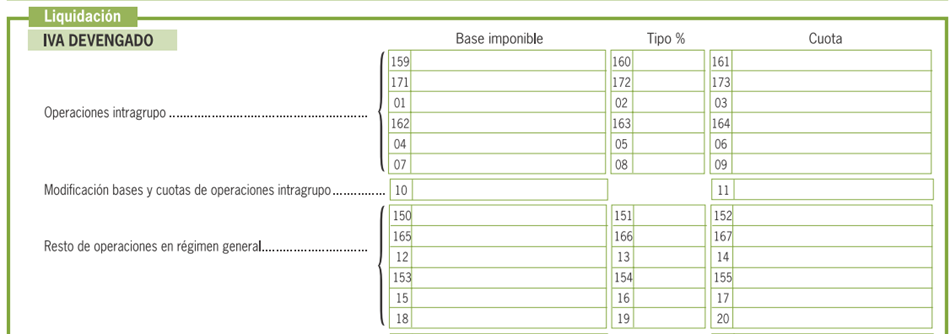 Se amplía este modelo (autoliquidación mensual del régimen de grupo de entidades) para incluir los nuevos tipos impositivos y recargos de equivalencia.