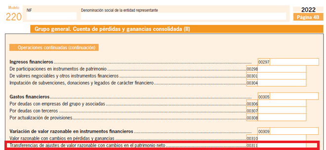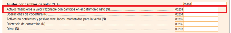 En la página 5, Patrimonio neto y pasivo, en el apartado Ajustes por cambios de valor, deberán informar de los Activos financieros a valor razonable con cambios en Patrimonio Neto nueva Clave [00203], que se corresponde con la cuenta 133 del PGC