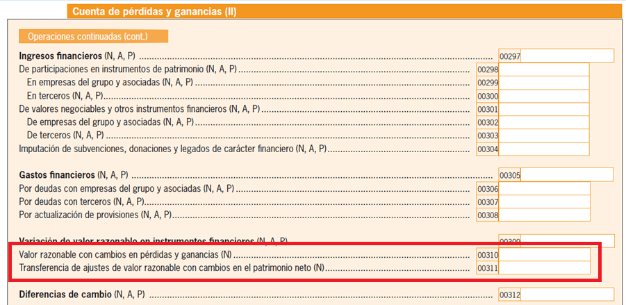 En la página 8, Cuenta de Pérdidas y Ganancias III, en el apartado Variación de valor razonable en instrumentos financieros, las nueva Clave [00310] que se corresponde con las cuentas 6630, 6631, 6633, 6634, 7630,7631, 7633 y 7634 del PGC, y la nueva clave [00311], que se corresponde con las cuentas 6632 y 7632