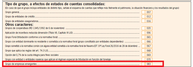 En la página 1 se incorpora la clave [083] para identificar los grupos de empresas emergentes: