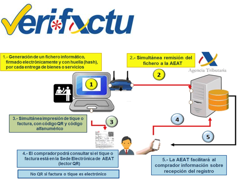 Este reglamento es conocido coloquialmente con la denominación de ‘Reglamento Veri*factu’, en alusión a la modalidad, más sencilla y eficiente, que se prevé para cumplir con la norma, mediante el envío de los registros de facturación a la sede electrónica de la Agencia Tributaria en el momento de su producción.