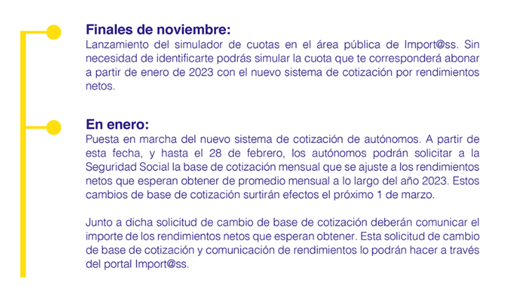 AUTÓNOMOS. CUOTAS SEGURIDAD SOCIAL. CALENDARIO. Nuevo sistema de cotización para autónomos en 2023