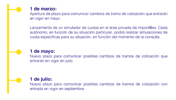 Nuevo plazo para comunicar posibles cambios de tramos de cotización que entrarán en vigor en julio.