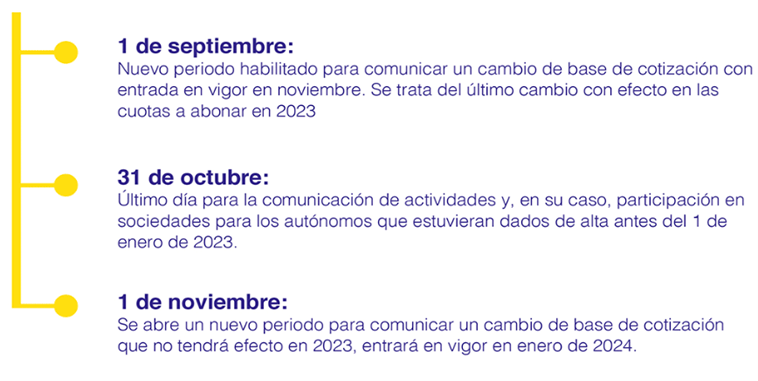 Nuevo periodo habilitado para comunicar un cambio de base de cotización con entrada en vigor en noviembre. Se trata del último cambio con efecto en las cuotas a abonar en 2023.