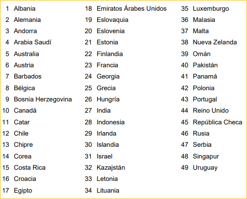 A continuación, se incluye una relación de las 49 jurisdicciones que, de momento, serán parte del Convenio Multilateral el 1 de enero de 2022 y cuyos convenios con España se modificarán: