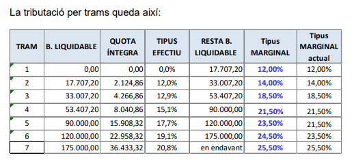 - L’IRPF guanya progressivitat: la càrrega fiscal es redueix per als contribuents amb menor nivell de renda i augmenta en els trams més alts