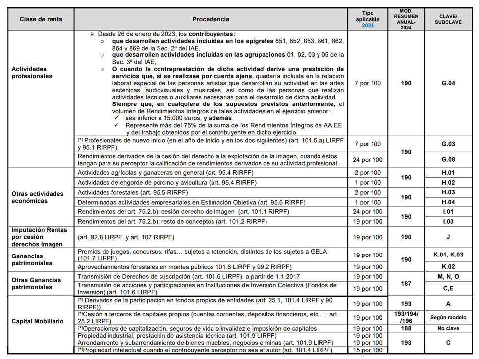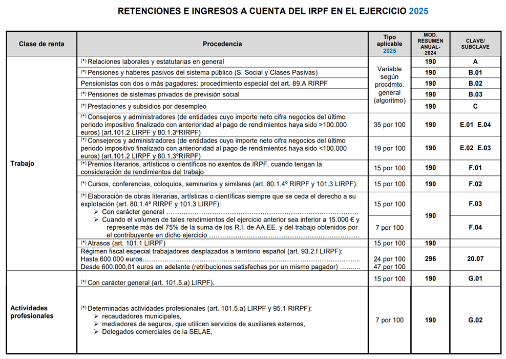 La AEAT publica Cuadro de Rentenciones de 2025 (sin variaciones respecto al 2024)