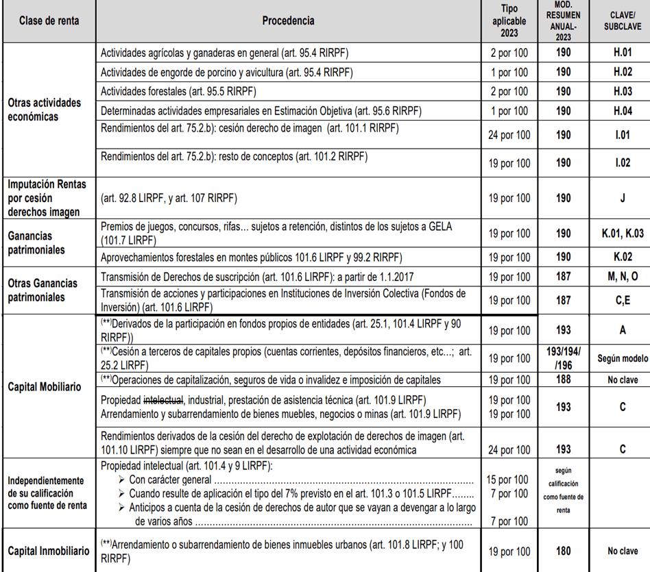 Enlace: Cuadros tipo de rentención IRPF 2023