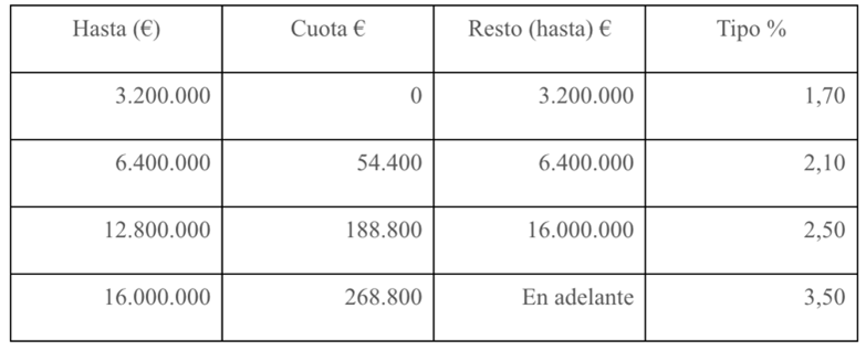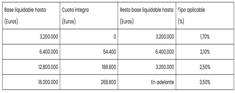 En el caso de Gipuzkoa, la Diputación Foral ha iniciado hoy el procedimiento de información pública, con la publicación del Anteproyecto de Norma Foral en la sede electrónica de la Diputación Foral de Gipuzkoa, así como en el portal digital de la Hacienda foral. Este anteproyecto propone un impuesto complementario al Impuesto sobre el Patrimonio, que grave el patrimonio neto de las personas físicas de una cuantía superior a los 3.200.000 euros con los siguientes tipos: