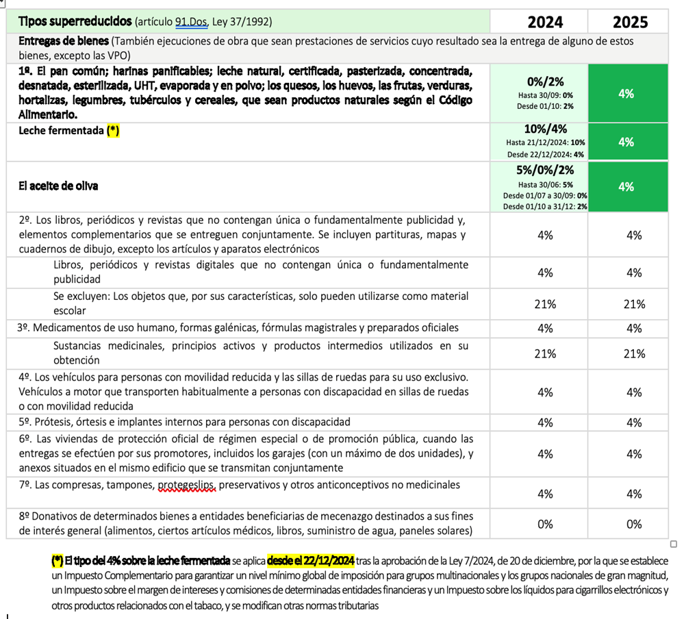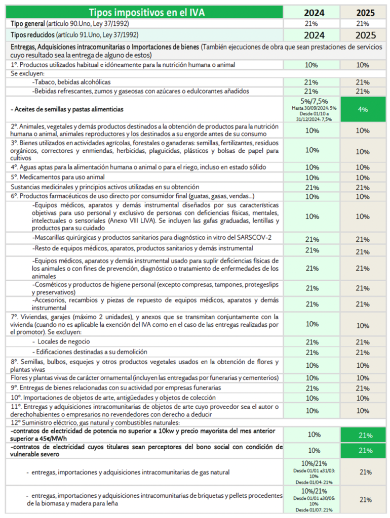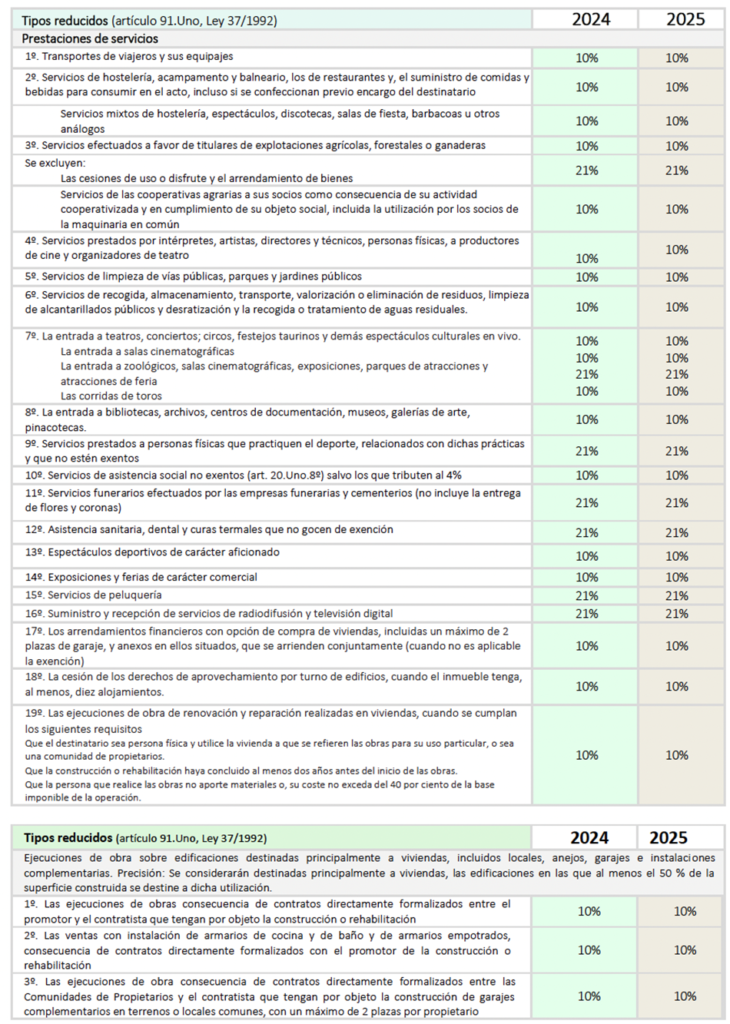 Tipos impositivos IVA 2024-2025