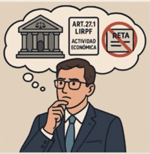 El Tribunal Supremo declara que, a efectos del IRPF, basta con que el socio profesional mayoritario de una sociedad esté obligado legalmente a estar en el RETA (art. 305 LGSS) para que sus retribuciones se califiquen como rendimientos de actividad económica (art. 27.1 LIRPF). No es necesario que figure formalmente de alta en el RETA.