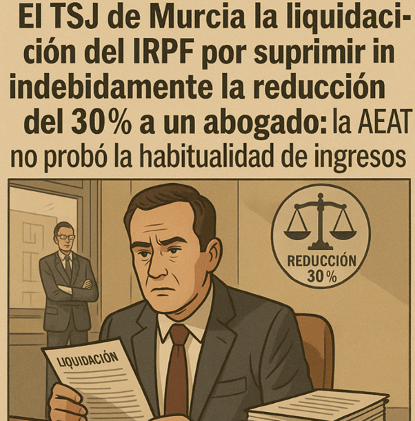 IRPF. El TSJ de Murcia anula liquidación del IRPF por suprimir indebidamente la reducción del 30% a un abogado: la AEAT no probó la habitualidad de los ingresos