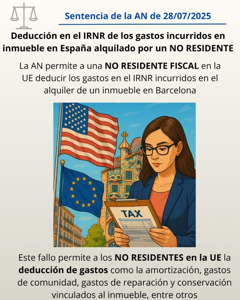 IRNR. GASTOS INMUEBLES ARRENDADO. La Audiencia Nacional permite a una no residente en la UE deducir gastos en el IRNR por arrendamientos, en aplicación del principio de libre circulación de capitales del TFUE.